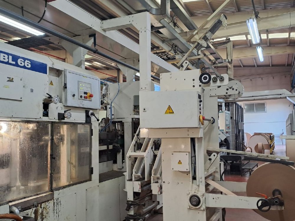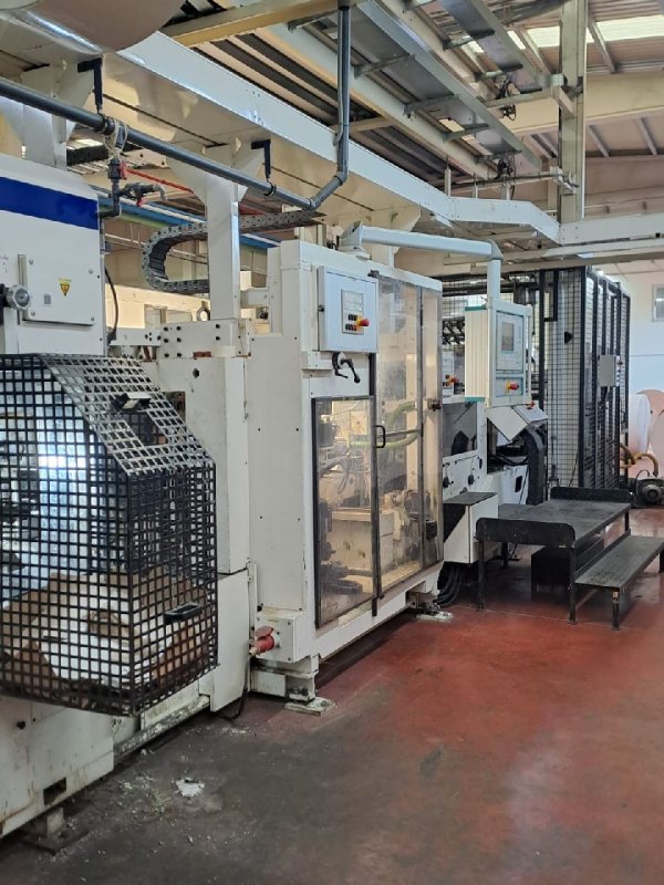 | Note | Tuber: -3 unviwnders- each with a max diameter of 1400 mm -Perforating unit -Printing unit with 4 colors, Web width: 1450 mm, Print Width: 1350 mm, Print repeat: from 550 mm -Cross pasting unit for up to 3 plies -Digital lengthwise injectors for 3 plies Transystem Bottomer: -Automatic rotary feeder -Bottomer patch unit each side -Double valve unit Palletizer |