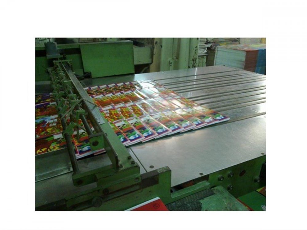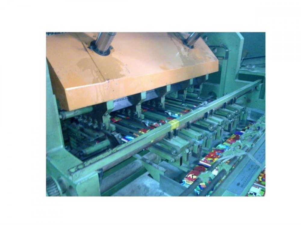 - One shaftless, floor pickup reel stand 2 x 2 ruling stations for 2 colour each side of the web Sheet cutting and counting station 2 board/cover inserting units 8 stitching heads Folding station Guillotine section Shingle delivery