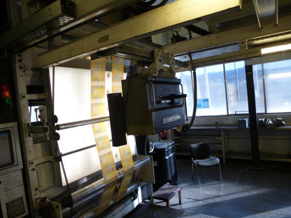 - Mechanical speed 300m/min. Gear pitch 10mm Material: plastic film 12-200my Cliche thickness 1,14/2,84 4 airshafts 3" Hot water heating type Inline slitting with 1 knive Portalift system for automatic cylinder's loading. 48 gears cylinders Spare parts : 2 doctor blade chamber; 4 color trays; 3 color pot Dimensions of printer 19,5mx7m Air mandrels: 8x300,9x370,8x420,7x440,9x460,9x500,5x530;2x570;6x660;6x650;16x950mm