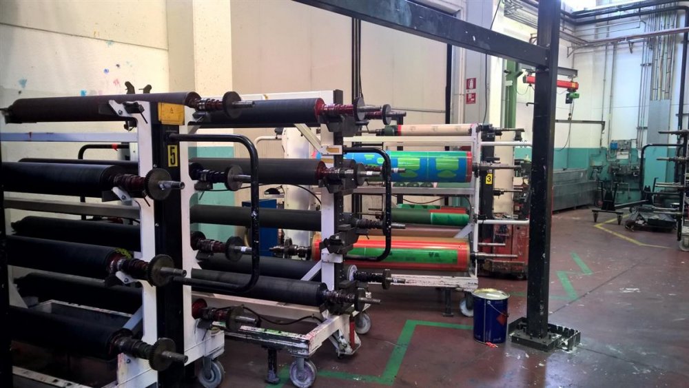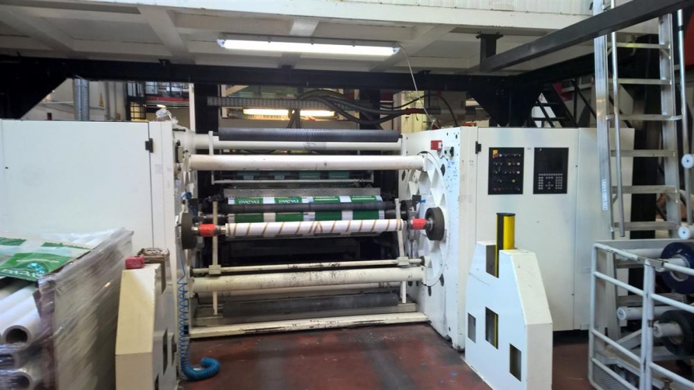 | Note | Small format gears from 400 to 599: 16 pcs. Large format gears from 600 to 1.200: 16 pcs Cylinders Trolleys for handling and job change: 7 Automatic cylinder handling system Portalift Motors and operator interface touch screen upgrades in 2015. Upgrade of the machine controllers interface made in 2015, including the replacement of all drivers for the anilox motors. Slitter unit with trim aspirations at the rewinder. |