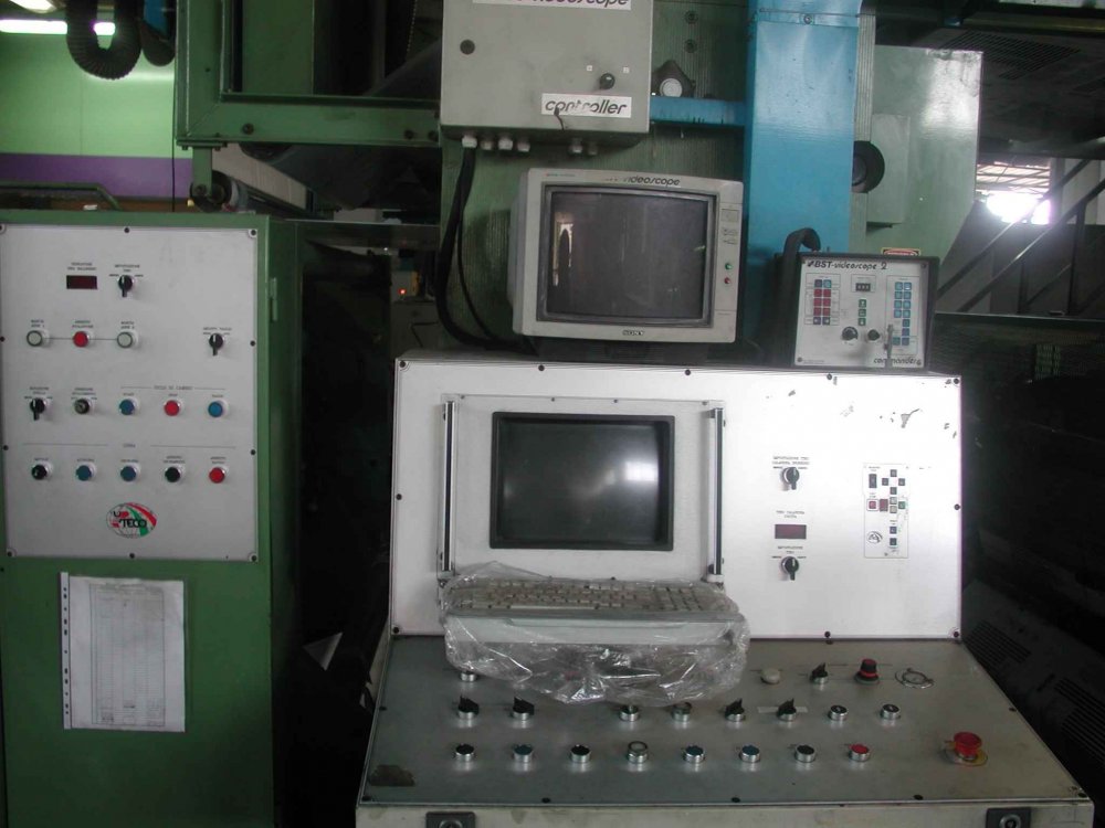 | Note | Gear pitch 5mm , Material : all plastic films and laminated; Motorized print station positioning with repeat preset, preregister, motorized long. registers , Driven Infeed roller with automatic web tension control ; Slitter in line Helios Banana roller. |