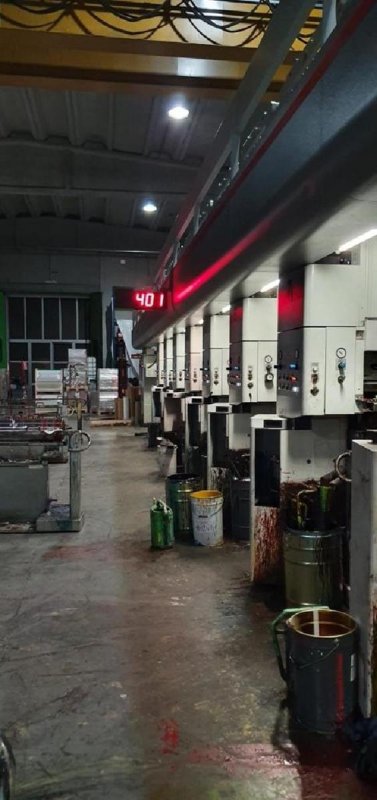 | Note | Mech.speed : 450 m/min with 550mm cylinders Paper heating roll 7 coating units with single hood and 3 with double. Totally 20 trolleys. Installed thermal power 600.000 Kg/cal/h 2 oil heaters by gas Turning bar for reverse printing of 2 colour Option : Thermo oil boiler |