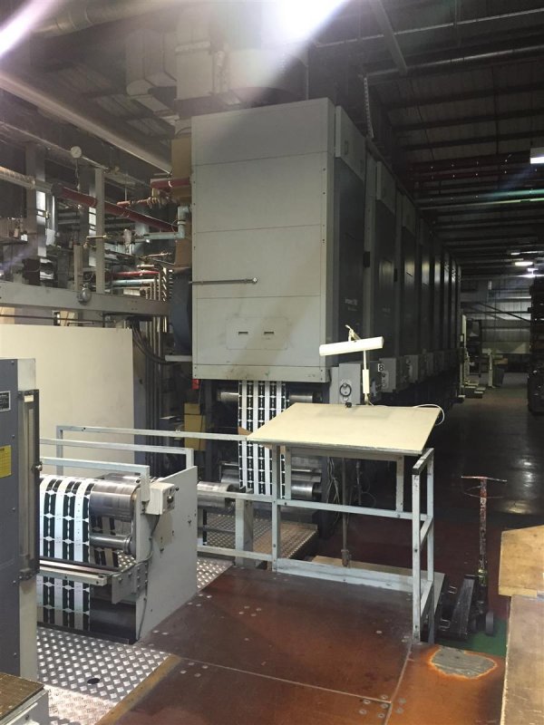 | Note | Rotogravure for cigarette packaging https://youtu.be/MOyVKvnAv2A Print unit 6 and 7 capable of printing front and backside of web Platen die cutter Shingle delivery Down stacker Bobst registron LEL control Co2 fire suppressant system |