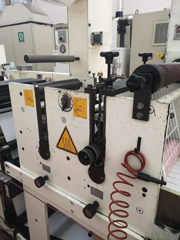 | Note | Complete:unwinder,double rotary die-cutting station, Corona treater 26 anilox ( 4x 320 l/cm-vol.4,5; 1x 160 l/cm- vol.6; 2x 140 l/cm-vol.8,0; 2x 100 l/cm-10 ; 1x 400 / 4 ; 1 x180 -7,5 ; 2x 280 -6 ; 1x 400-5 ; 1x 420 - 5 ; 1 x 420 - 4 ; 1x 180 - 5 ; 1x 500 - 3,5 ; 1x 100 - 3x 500 - 4,5 84 plate cylinders 1 turn bar Lamination unit with film cold foil 1 magnetic cylinder for hot foil (12'') 9 magnetic cylinder for die cutting (13 1/8'' : 24'') Longitudinal slitting unit Register control OMET Multicolor Video Camera BST |