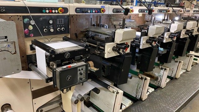 | Note | Number of printing units: 5 (all UV and hot air drying) Min. material width: 150 mm Max. material width: 333 mm Max. diameter of unwind roll: 750 mm Max. diameter of winding roll: 700 mm Printing cylinders: 5 x 80, 85, 96 and 114 teeth Magnetic cylinder: 80, 85, 96 and 114 teeth Anilox cylinder: 10 pcs Other items : 14 x UV lamp 14 x source 20 x flap for UV lamp 3 x bottom cassette 1 x top cassette |