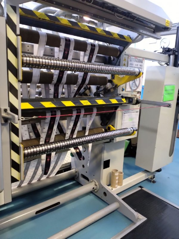 | Note | Printing possibility - 8 colors +1 rotogravure printing unit -8 Flexo printing group, complete with drum, removable ink drawer - 1 Rotogravure printing group, specific for front side printing, complete with turning bar for back side printing for cold seal coating "PETROCOLL" 1265, from 2.8 to 3.2 gr/mq. at a maximum speed of 180 m/1 on paper Plate mounter Slitter Bimec, width 1200mm 1 Corona treatment 1 Paper cleaner with single-sided contact roller mod. ACE 1 Scrap removal station limit 530 mm 1 Viscometer for solvent inks 1 Ink supply pump and tank 1 Omet electronic register control for 8-color machine, complete with "gate" function. 1 "Vision 1" vision system 1 E+L Elscan motorized video camera 1 Cold foil group handling trolley 1 Sliding cold foil group that can be positioned in each group (no rails) 1 Longitudinal scissor cut, for Varyflex 6 Knife and counter knife for self-sharpening box cutting, Helios |
