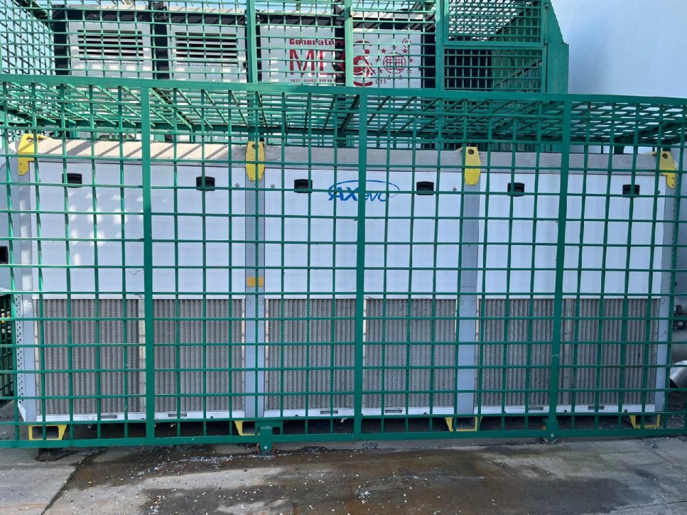 | Note | Water and machinery cooler, brand Eurochiller, model AXA EVO 195, axial process 195 kW, capacity from 28 to 224 kW, year 2016; MEC power generator, 600 kVA = 480 kW continuous output, Perkins 8-cylinder turbo engine, 1500 rpm, year 2016. |