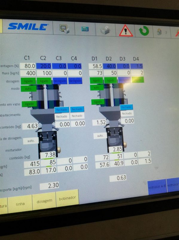 - L/D 33,output 600 KG/H, water cooled AC motor, 3 components gravimetric dosing unit, hydraulic screen changer