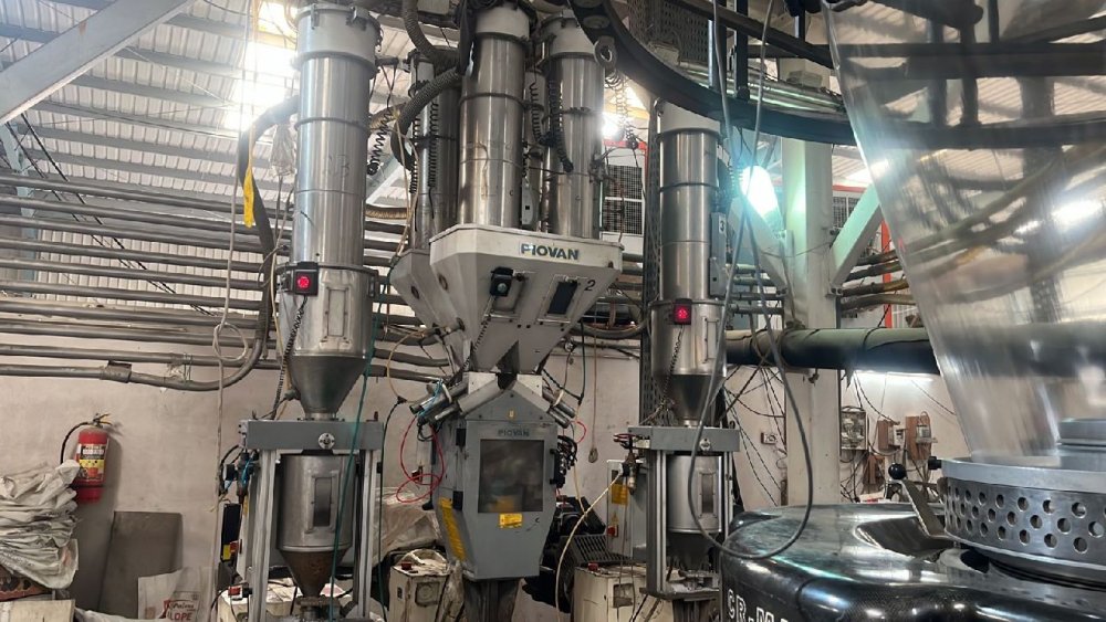 - 450 mm 5-layer Die-head, 10-zones heating, 550 x 2 mm insert for LLDPE IBC with 1 nos. air chiller bubble control, auto inner bubble exchange by high speed stepper motored Valve Air ring with 64 heating inserts, Brand - Kunding