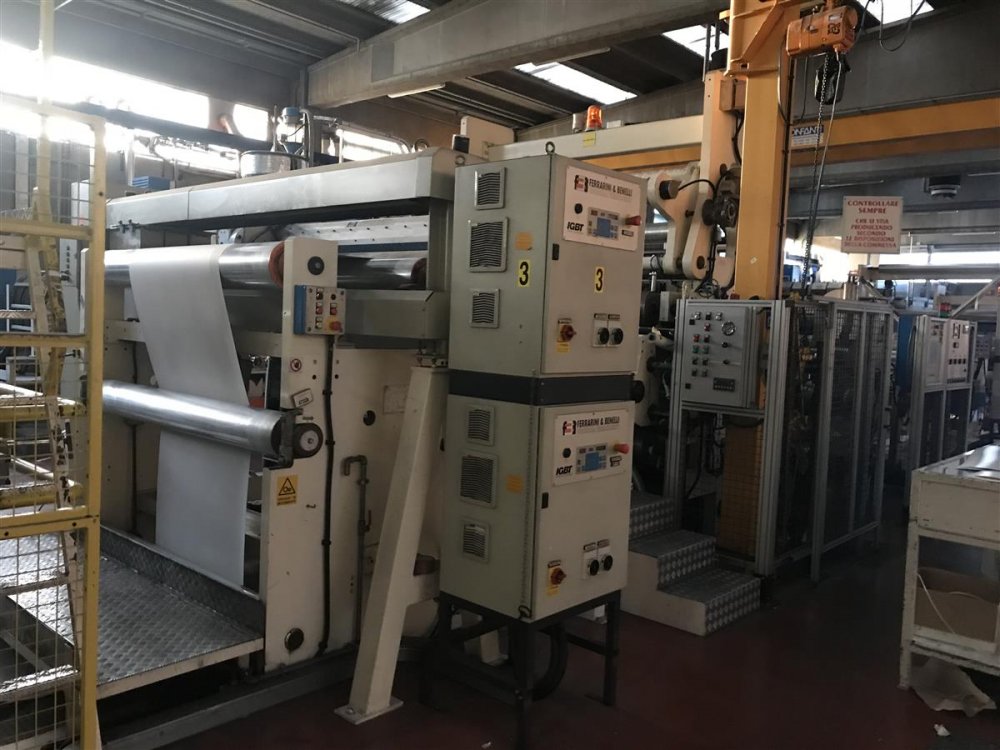 - Extrusion lamination unit Make: Battaglio Extruder: Make Battaglio screw diam 180mm Die Make Erwepa, - with external deckilng - with automatic thickness profile controll adjustment though 69 thermal bolts chill roll diam 800mm Thickness gauge Beta rays make Protagon seconday reel unwind 1200mm diam