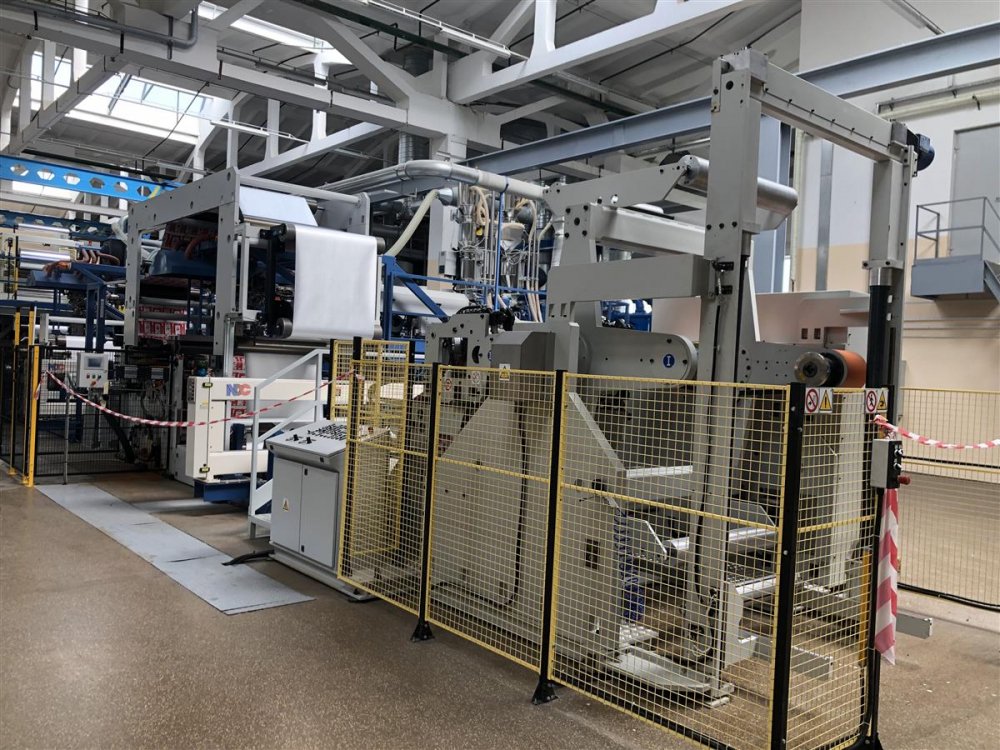 | Note | - Automatic thickness control system: 3 thickness gauges make NDC. 2x x-rays, 1x both x-rays and infra-red. 3 extrusion dies with automatic thickness control - Chilled water pumping system for the whole line (in closed loop) - Water chiller - 3 units aertecnica croci for edge trim suction and compression - Siemens S7 PLC, ABB inverters - Overhead bridge cranes |
