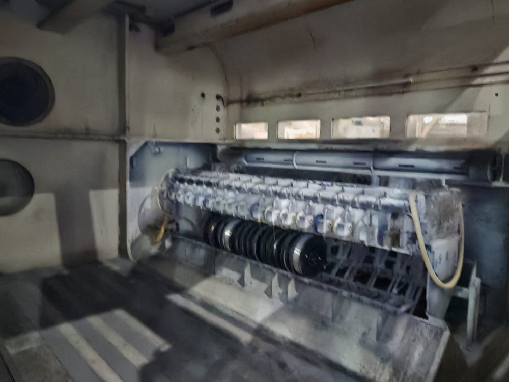 - Highlights: - Camera and monitoring system - Portholes circular viewing - Closed loop automatic deposition control - Closed loop tension control - End tensioned evaporator clamping - Precision zones seals - Full width viewing windows - MFC Gas wedge injection system - Individual stepper motor control - Individual temp control - Individual Trystor control - Integrated drum shield and shutter - Inverter controlled booster pumps - Linear tracking anti-telescoping lay-arms - Multi point deposition monitor - Remotely adjustable bowed spread roller - Edge shield adjustment - Same side reel change over - Swing over clamps - Web system control interface Web tension 66-662N Anti telescopio via 2 linear tracking lay arms Cooling: - Process drum: 595mm diam chrome plated - 2 zone gas wedge injection system, layer of gas between process roll and web -1x post coating cooled roller 250 mm diam Spreading: - 1x spiral grooved roll - 3x bowed spread er rollers Tension : - 2x load cell rolls to measure tension on unwind and rewind - 1x Independently driven draw roller, with high friction covering, to tension web over process roll Optical system with light emitting diodes and photo detectors for O.D monitoring Chiller