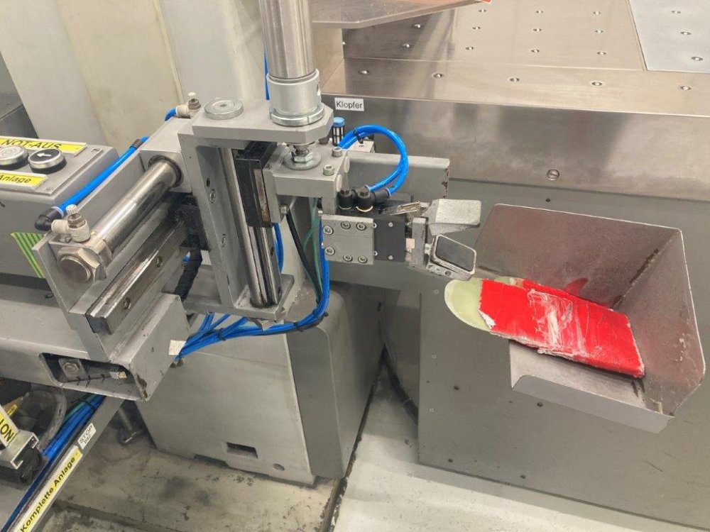 | Note | VLF sized Polar Mohr cutting Flowline with loading and unloading of the material to be cut consisting of Polar TR 185-BL-7 left-sided loading Transomat mit Chipmarker clamb gripper and slider for back table batching age 1999 sheet size 126 x 185 cm Gripper feed via rear table Cutter Polar 176 ED age 2000 - working width 176 cm - max. insertion depth 200cm - Insertion height 160 mm - transfer width between backside table and Transomat is 176 cm - Rotating and tilting saddle - with ED controller - left side pneumatic lowerable side bar - pneumatic lowerable stainless steel transfer corner on the right air table - approx 7 knifes Polar TR 160-ER-7 S on the right unloading Transomat age 1999 sheet size 126 x 164 cm Not included in delivery Floor-mounted Platform scale |