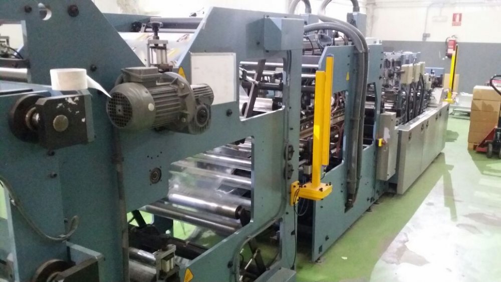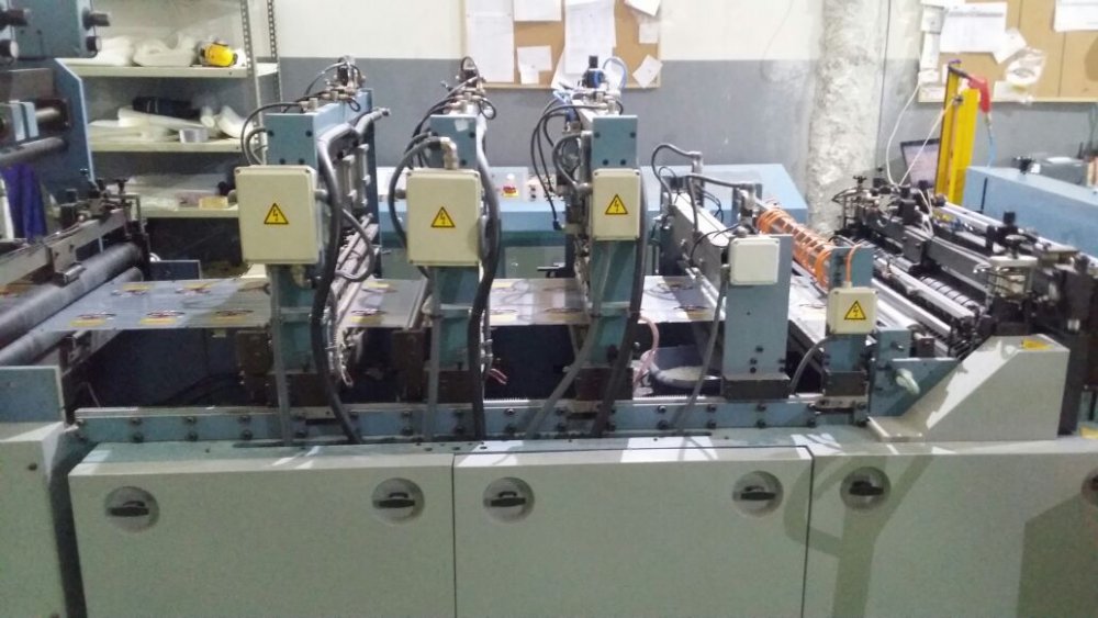 | Note | Machine for the production of three side seal vacuum bags. 2 Longitudinal welders 650 mm, 2 welding cooling systems 650 mm. 2 transversal welders 900 mm, 1 welding cooling system 900 mm. 1 unit to produce bags with hole, 2 lanes Slitting unit, guillotine blade type with antistatic system before and after the slitting. Additional cooling device for the water cooling system . Two connections to compress the air: one for mandrels and one for stacking unit. |