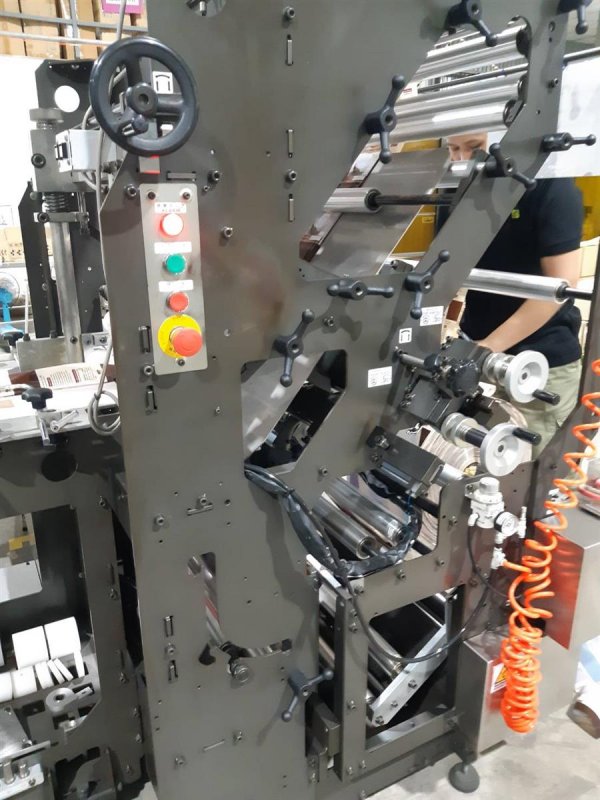 | Note | Unwinder Side gusseter 1 longitudinal fin sealer Flattener and pouch forming unit with adjustable plates 2 longitudinal sealer + 2 cooling bars Nip rollers 3 cross sealers + 1 cooling bar Cross cutting device Collecting table |