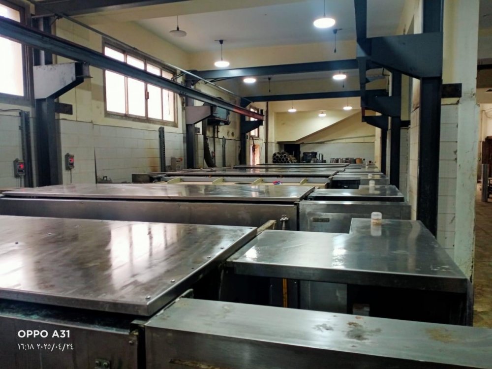 - Automatic electro plating line consist of : 1) Loading and washing tank with 5 types of cylinder holders 2) Degreasing tank 3) Dechrome tank 4) Alkaline copper tank 5) 2 hard copper tanks 6) Chrome tank 7) Surface polishing unit with 2 stone heads Automatic crane structure composed of : - Hoisting frame and travelling crane and portal frame and suspend rack - 5 exhaust fans - Chrome dust catcher - 5 copper extension systems for shaft and hollow cylinders