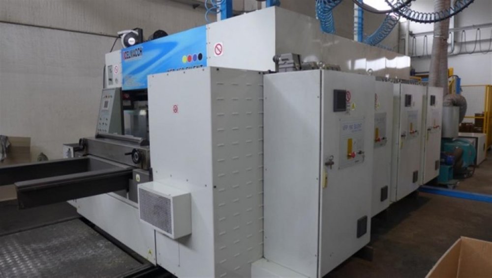 - Available December 2016. Not in production,possible vision. 4-color printing machine with drying ovens to air on every color and on the stacker UV oven for painting, 4 doctor Blade and anilox rools. Overall Dimension: width 4.30 meters - length introduction, printing units and lamps 8.30 meters - 4.20 meters length stacker. Total length of the complete line 12.50 meters. 1st electric panel width 60 cm x 3.50 meters length 2nd Electric panel width 50 cm x 1.20 meters length working thickness 1 \8 mm minimum sheet length 400 mm maximum sheet length 1600 mm minimum sheet width 350 mm maximum sheet width 950 mm Maximum print surface 1650 x 950 mm diameter cylinder with clichè 334 mm cliche thickness 4,5 mm Speed 7800 sheets\hour