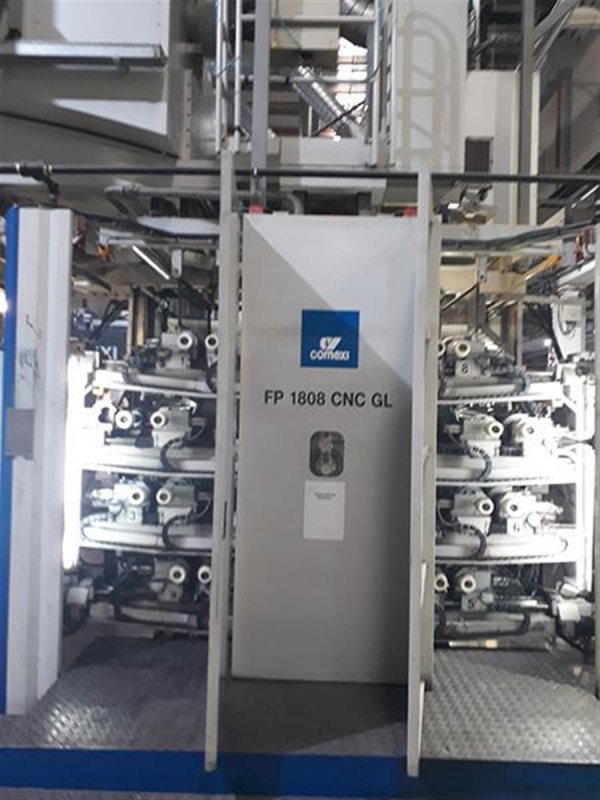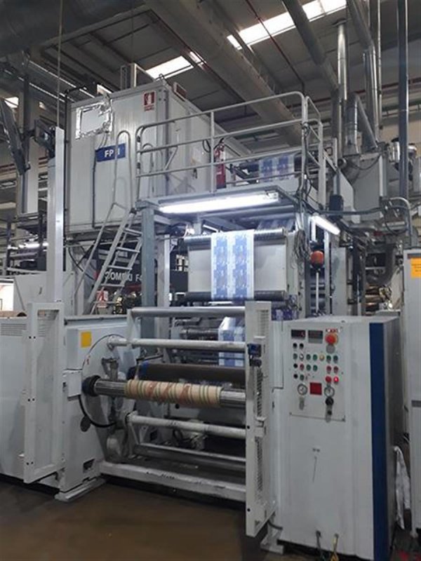 | Ulteriori informazioni | Materials: Films PE, OPP and similar films. Thicknes: min 25 micras - max 100 micras Speed: 350 m/min Motorized lateral register; Core diam: Unwinder: 152 mm - Rewinder: 76 and 152 mm. Tension range: 2/30 Kgs. Inks pumps + self cleaning including: pneumatic recirculating ink-pumps with reversible fluid flow system Ink Tanks, stainless steel, 20 l. Electronic control, valves and pneumatic controls. |