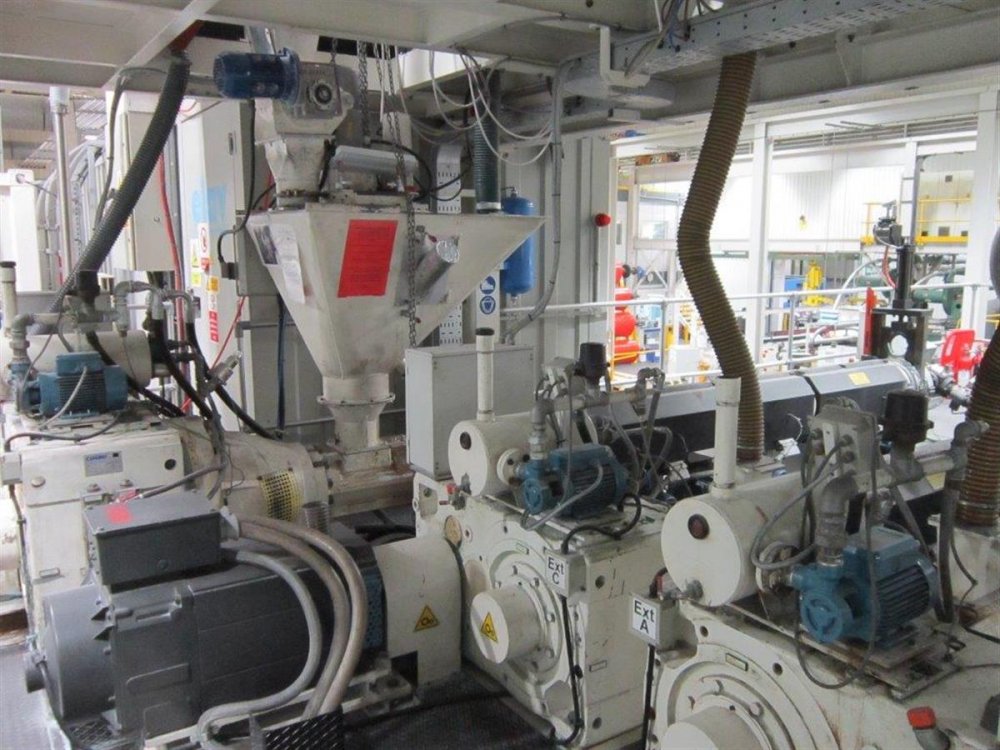 | Ulteriori informazioni | Suction device for trimmed edges complete with grinding mill soundproof cab, fan, piping and re-feeding hopper placed in the main extruder diam.130 mm, and haul-off unit to unwind scrap reels |