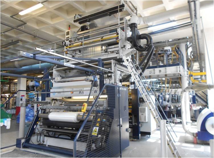 - - water cooled gear boxes with integral thrust bearings; heating/cooling combination with ceramic heating bands and blowers; material feeding with magnetic separator, flat side valve and level control; temperature control with heating circuit control/monitoring with wear-free solid state relays; AC Vector direct drives; - 3 Pivoting Screen Changer Type Kiefel for Kirion 50; 2 Pivoting screen changer type Kiefel for Kirion 60; 2 Pivoting Screen Changer Type Kiefel for Kirion 70; - 7 Melt Temperature Measurement Instruments; 7 Melt Pressure Measurement Instruments prior to screen changer with over-pressure interlock; 7 Melt pressure measurement instruments after screen changer; - 1 adapter; 3 Sound insulation plate for blower Kirion 50; 2 Sound insulation box Kirion 60; 2 Sound insulation box Kirion 70; 7 Heat Exchanger for Extruder Drive; - 1 Moveable Die cart; 1 preparation of Profile Control for the installation of heating cartdges in the centering ring or air ring; 1 Frequency Control for IBC supply and exhaust air blowers;1 IBC for low stalk production for die diameter 500mm; 1 High Capacity Air Ring HL 500/600; 1 Profile Control C2 equipped with 64 heating inserts for control of cooling ring air temperature with cooling ring HL 500/600;1 Air Ring Insert 500S dual lip Venturi insert for LLDPE/ lDPE low stalk production for die diameter 500mm;1 Extra Piping for blowes located on intermediate tower platform, operator controls located at floor level; 1 Twin Chiller; 1 Calibration Cage; - 1 Brush rolls with spread Effect 2200; 1 aluminium side guides 2200; 1 package for friction control; 1 Driven banana Spreader roll 2200; - 1 edge Fold Slitter 2200; 1 Edge Trim Slitting Station 2200; 1 Linear and Horizontal Blade Oscillation 2200; 2 Antistatic System; 2 Edge Trim and Multi-Web sliting Station; 4 additional twin blade holders; 2 horizontal oscillation; 4 pneumatic winding shaft; 2 winder control cabinet cooling device; 2 electric roll shaft hoists with frames; 1 edge trim guide fingers; Vacuum Suction System;1 Control of average Layer Thikness; - Accessories : Reversing haul--off, back to back winder; - Auxiliary Equipments : Corona Treater Softal (4-sided treatment);Electronic Systems Radiometric thickness control system; WaterBath for the Asymmetric Barrier Structures;Plastcontrol gravimetric dosing unit,running meter control, including material feeding.Gusset Boards for producing gusseted film; 1 main and 3 dosing components for the skin layers (Layer A&G), 1+2 dosing components for the core layers ( Layer B,C,D,E,F ). Thickness range: 20-250µ Thickness variation: +/- %5