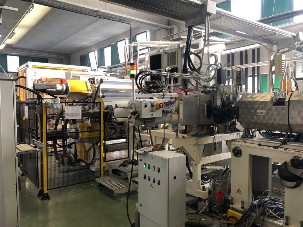 - In line slitting, pulling calander, 4 winding shafts, max reel diam 1000mmm