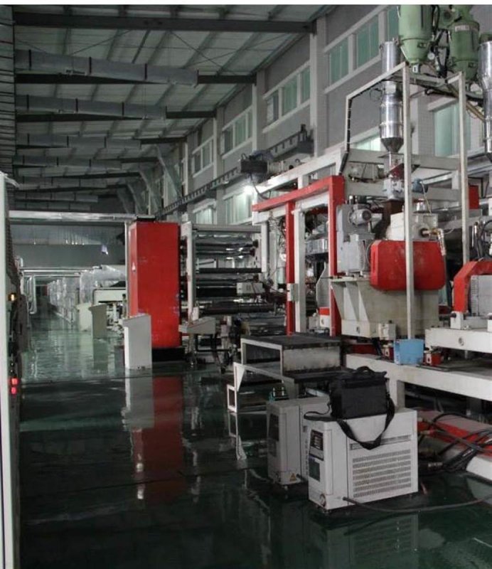 - Drying : automatic drying (3 dehumidifiers, 3 silos) with auto feed Option of offline strething of alternative products such as PVC and OPP Scanning isotopic gauge scanner with display Electronics: all lates version Siemens including 7 touch screen HMI's encoders, inverters, PLC's and motors. Power requires 450 A for start up, 360V 3 phase. Consumes 220A while running Labour can be operated by 2 skilled and 2 semi-skilled operators Including boiler (fuel burning), chillers, water cooler, piping 1 x accumulator