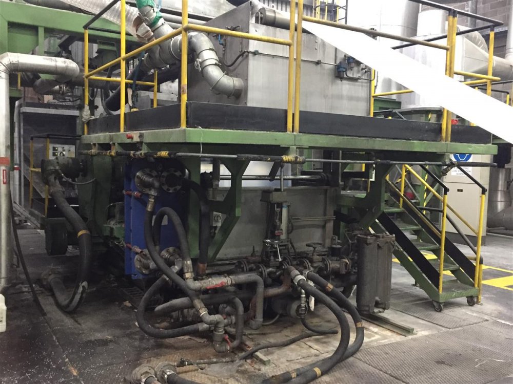 | Ulteriori informazioni | Max mechanical speed: 250 m/min / upgraded to 300 m/min; AC and PLC:-fully integrated system PLC with 3 operator workstations with trends and reports; Utilities:- Compressor, Boiler, Silos, Mill Rolls, Mill roll Stands (corona and nip), Nip Rolls stands, Over Head Crane (10TM). |
