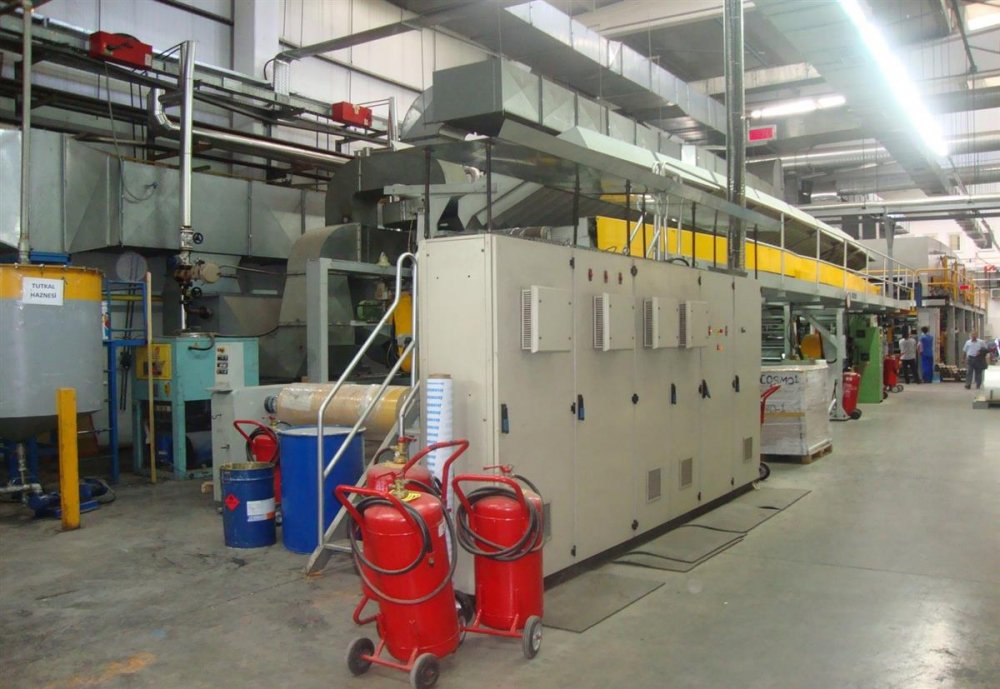 - 2 coating units with trolley One station with mayer bar – one station roll over roll. Total length 22 m Before adhesive applying unit there is a calendar unit. After drying oven chill roll All cylinders are plasma coated where is necessary.