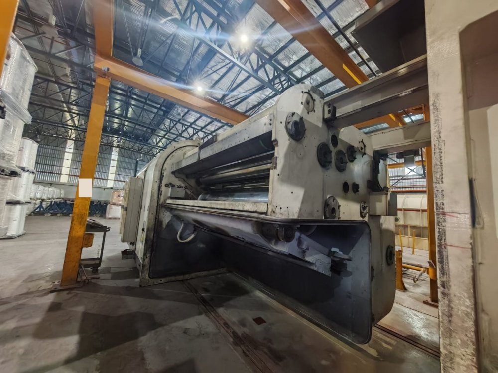 | Ulteriori informazioni | Highlights: - Camera and monitoring system - Portholes circular viewing - Closed loop automatic deposition control - Closed loop tension control - End tensioned evaporator clamping - Precision zones seals - Full width viewing windows - MFC Gas wedge injection system - Individual stepper motor control - Individual temp control - Individual Trystor control - Integrated drum shield and shutter - Inverter controlled booster pumps - Linear tracking anti-telescoping lay-arms - Multi point deposition monitor - Remotely adjustable bowed spread roller - Edge shield adjustment - Same side reel change over - Swing over clamps - Web system control interface Web tension 66-662N Anti telescopio via 2 linear tracking lay arms Cooling: - Process drum: 595mm diam chrome plated - 2 zone gas wedge injection system, layer of gas between process roll and web -1x post coating cooled roller 250 mm diam Spreading: - 1x spiral grooved roll - 3x bowed spread er rollers Tension : - 2x load cell rolls to measure tension on unwind and rewind - 1x Independently driven draw roller, with high friction covering, to tension web over process roll Optical system with light emitting diodes and photo detectors for O.D monitoring Chiller |