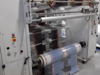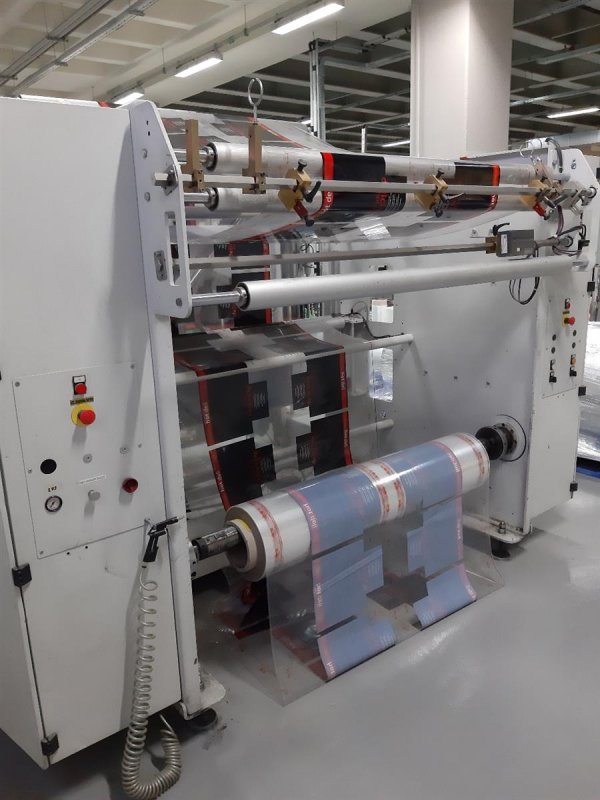 - Single, max reel width 1530mm, reel diam 1016mm 3 and 6 inch shafts, 2 trimming blades, edge guide, tension control, Punching station in register for guesset hole, main folding triagle for prodiction of 3 side seal from 1 web; Gusset foling bord for production of stand up from 1 web