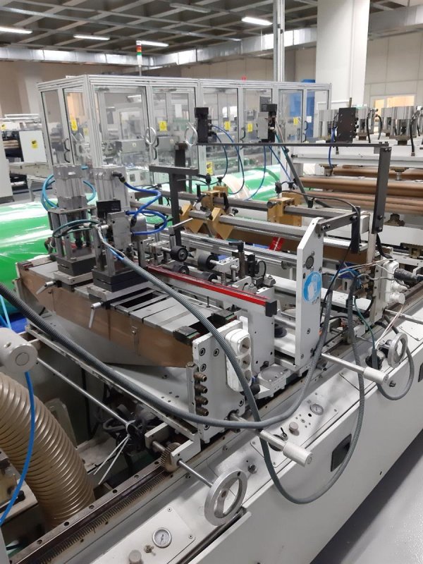 | Ulteriori informazioni | Machine is servo driven, with several independent servo drives for max flexibility and to optimize change over time - Longitudinal zipper sealing, 2 lanes - 2 xLongitudinal sealing (800+100mm) and cooling (400+100mm)¨ - 2x cross sealing sections 680mm - handle hole punching - V and U corners punching - Register photocell - MD trimming - Cross cutting section, flying knife (1 or 2 lanes) |