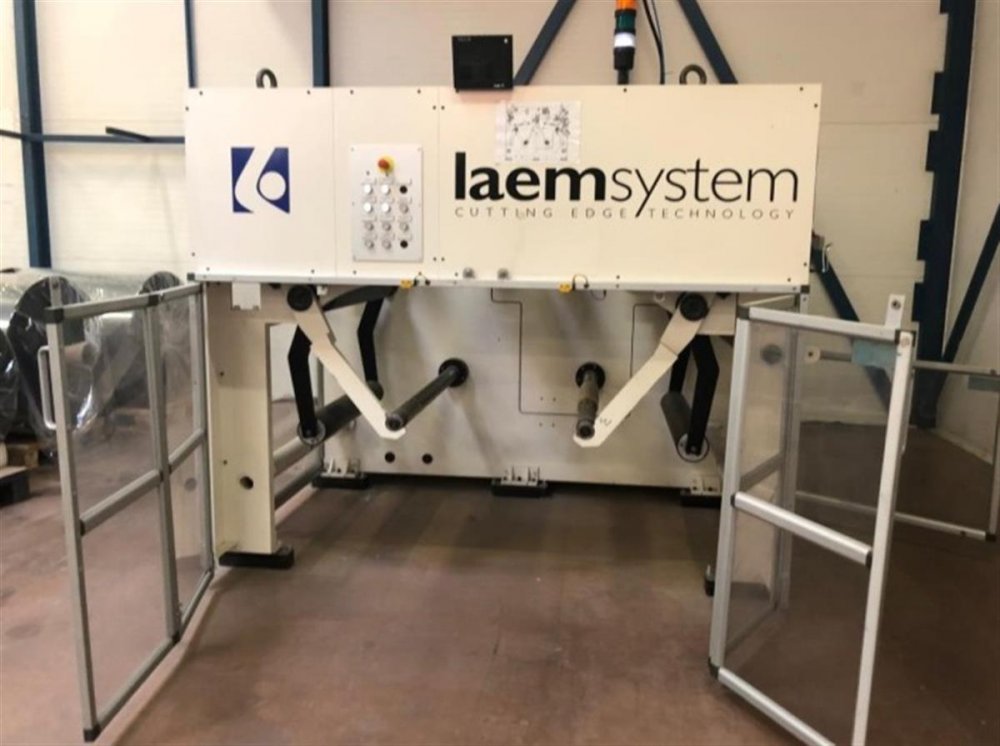 - Maximum outer diameter unwinding/rewinding: 1000 mm Diameter cores unwinding/rewinding: 3” / 6” Maximum mechanical speed: 600 m/min Unwind & Rewind Tension range: 25-250 N Taper Tension: from 100% to 50% of the set tension Web direction: Bidirectional Electric power supply, drive: CA 400V – 50HZ Electronic power supply, service voltage: 12 kW Electronic components: Siemens Min. Pressure of compressed air supply: 6 bar Consumption of compressed air, humidity free: 70 l/hr Noise level Lp(A): < 80 Db(A) Safety standard: DM 2006/42 CE Maximum jumbo roll width: 800 mm Width of rollers / draw roller: 900 mm Maximum jumbo roll diameter: 1000 mm Unwinding and Rewinding Shafts: Two 3” + two 6” shafts Maximum jumbo roll weight: 800 kg Type of cores: Good quality cardboard Web guide stroke : ± 50 mm Rewinding method - Central drive, with rubberized lay-on roller across the full nominal width The machine is CE certified and meets the international safety standards