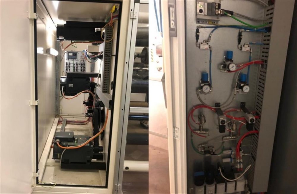 | Ulteriori informazioni | Maximum outer diameter unwinding/rewinding: 1000 mm Diameter cores unwinding/rewinding: 3” / 6” Maximum mechanical speed: 600 m/min Unwind & Rewind Tension range: 25-250 N Taper Tension: from 100% to 50% of the set tension Web direction: Bidirectional Electric power supply, drive: CA 400V – 50HZ Electronic power supply, service voltage: 12 kW Electronic components: Siemens Min. Pressure of compressed air supply: 6 bar Consumption of compressed air, humidity free: 70 l/hr Noise level Lp(A): < 80 Db(A) Safety standard: DM 2006/42 CE Maximum jumbo roll width: 800 mm Width of rollers / draw roller: 900 mm Maximum jumbo roll diameter: 1000 mm Unwinding and Rewinding Shafts: Two 3” + two 6” shafts Maximum jumbo roll weight: 800 kg Type of cores: Good quality cardboard Web guide stroke : ± 50 mm Rewinding method - Central drive, with rubberized lay-on roller across the full nominal width The machine is CE certified and meets the international safety standards |