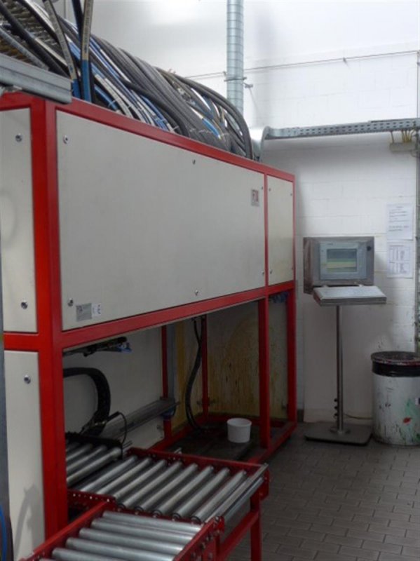 | Ulteriori informazioni | Includes: 1x 1000L Barrel for color additive 24 x 200 L Barrel for glue 3 x solvent 8x 200 L Tanks for laminate glue components Total 36 BASE Connected with an automatic dipensing system FS 2015 K36/36 CALIPSO PRO (Color and liquid processing software) - is used for running FÜLL – dispensing centers and allows for processing of the necessary data for storage, dispensing and handling of raw materials and completed mixtures. CALIPSOPRO consists of three program parts CALIPSOProGUI installed on a workplace PC (office computer). This PC is equipped with the necessary input and output equipment (keyboard, mouse, monitor and printer). It is connected to the server PC in the switch cabinet. It can be optionally integrated into a network, e.g. to process data from a color metric computer or host computer. CALIPSOProPLC is the software of the system control (PLC). CALIPSOProVi is installed on the sercer in the switch cabinet. It is the software for the operating terminal. Solvent hose "Solvent TRIX® 310" Wilden P025/AZPPP/TNL/TF/ATF/562 Diaphragm Pump (Barrel) - Agitator |