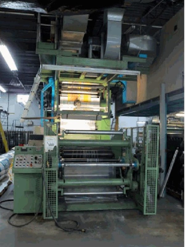 | Note | Unwind with splicer, slitting section, Fife Edge Guide Gas fired arch impingement oven, 2 zones 9' each, IMEC Burners Eurotherm drives Sleeve system with 160 sleeves and 16 anilox |