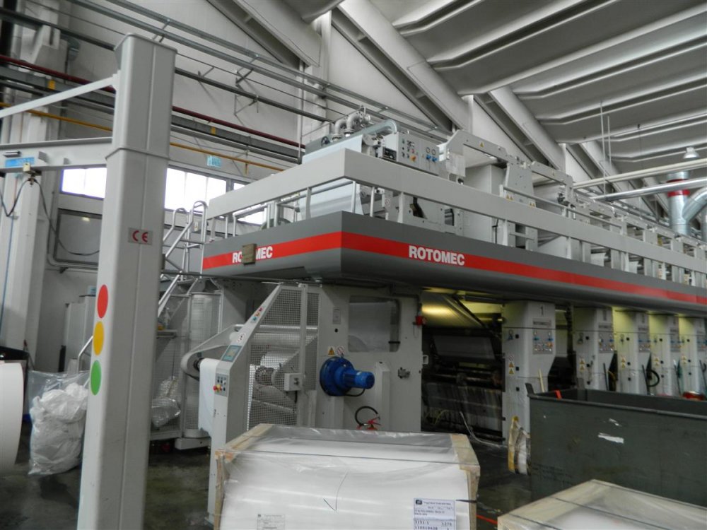 | Drying specifications | units 2 to 7 , 1 blowing fan each unit ( totally 6 ) , single drying hood 2, 5 mt , and one main common exhaust fan ; for units 1, 8 and 9 double drying hood 2 x 2,,5 mt , 1 blowing and 1 exhaust fan each one of the three units . Automatic air recirculation unit with LEL control by Rotomec Zellweger for all units -12 control zones |
