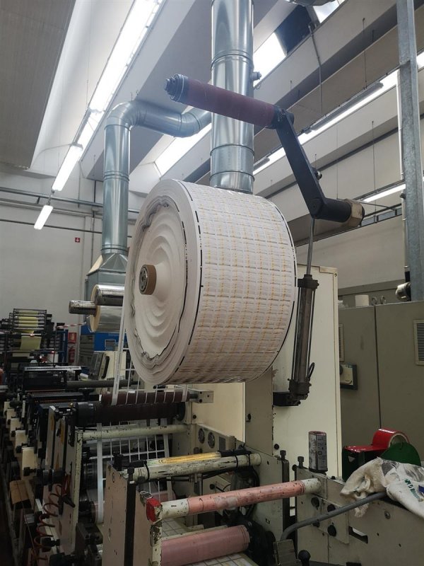 | Note | Complete:unwinder,double rotary die-cutting station, Corona treater 26 anilox ( 4x 320 l/cm-vol.4,5; 1x 160 l/cm- vol.6; 2x 140 l/cm-vol.8,0; 2x 100 l/cm-10 ; 1x 400 / 4 ; 1 x180 -7,5 ; 2x 280 -6 ; 1x 400-5 ; 1x 420 - 5 ; 1 x 420 - 4 ; 1x 180 - 5 ; 1x 500 - 3,5 ; 1x 100 - 3x 500 - 4,5 84 plate cylinders 1 turn bar Lamination unit with film cold foil 1 magnetic cylinder for hot foil (12'') 9 magnetic cylinder for die cutting (13 1/8'' : 24'') Longitudinal slitting unit Register control OMET Multicolor Video Camera BST |