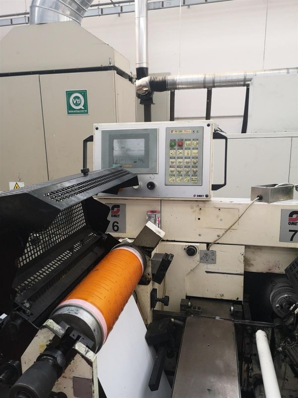 - Complete:unwinder,double rotary die-cutting station, Corona treater 26 anilox ( 4x 320 l/cm-vol.4,5; 1x 160 l/cm- vol.6; 2x 140 l/cm-vol.8,0; 2x 100 l/cm-10 ; 1x 400 / 4 ; 1 x180 -7,5 ; 2x 280 -6 ; 1x 400-5 ; 1x 420 - 5 ; 1 x 420 - 4 ; 1x 180 - 5 ; 1x 500 - 3,5 ; 1x 100 - 3x 500 - 4,5 84 plate cylinders 1 turn bar Lamination unit with film cold foil 1 magnetic cylinder for hot foil (12'') 9 magnetic cylinder for die cutting (13 1/8'' : 24'') Longitudinal slitting unit Register control OMET Multicolor Video Camera BST