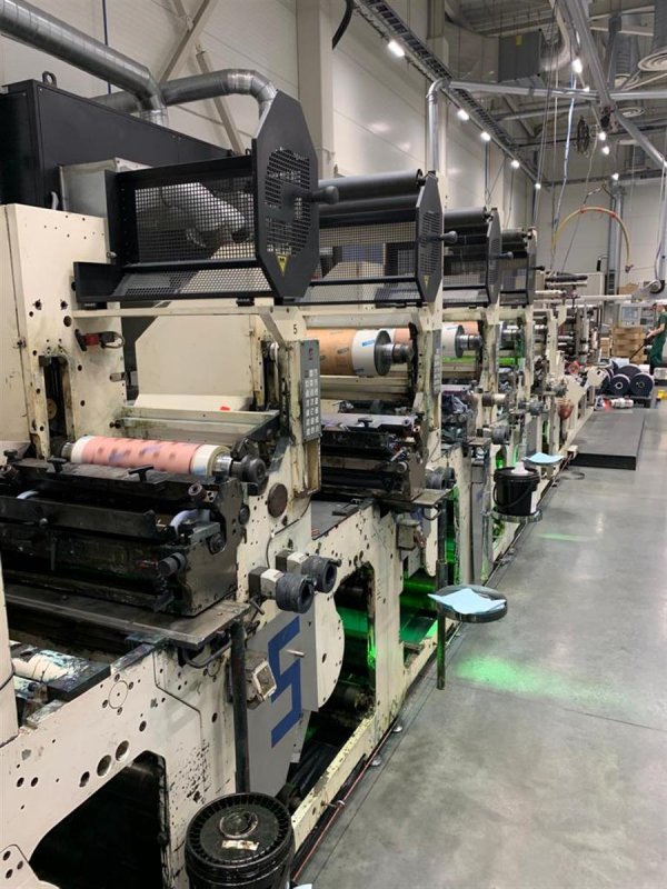 | Note | Introduction + hot air – 60KW +120kW 400V 50Hz 3ph Compressed air – 6bar. 400l/min The standard unit was with 7 section, 2 additional sections were added to the unit, and now it is 9 sections. Old UV lamps have been replaced with E2C UV lamps. Material 12mkm film / 600 mkm cardboard Max speed 150 m/min Air pressure 6 bar Printing register adjustment 360 Maximum print width 405 mm Maximum die cutting width 405 mm Maximum die cutting repeat min 304,8 mm / max 609,6 mm Unwinder spindle diameter 76,2 mm Rewinder spindle diameter 2 shaft 76,2 mm Unwinder diameter 1000 mm Vacuum system, double side web cleaner 1psc One side corona treatment 1 psc UV curing system: single lamp UV GEW E2C system Hot air drying system: possibility only unit no 6 and no 9 Kit for reverse printing. Including enclosed chamber doctor blade and peristatic pump: Possibility unit no 8 Water cooling drums after each printing unit: chiller not included Possibility UV laminating: unit no 8 Motorized video camera EL scan Set of antistatic bars Web breake sensor 1 psc Servo driven mandrel for printing sleeves Printing preasure adjusment on 4 independent points Register adjustment is possible on every deck or at product Operator interface through touch screen panel Plate speed correction +- 2 % (slipping ) Inks pan with rubbel roll 12 psc Web turn bar Slitting unit Spare parts, accessories, technical documentation included l L/CM 60 DEGREES VOLUME CM3/M3 PSC 460 2,9 3 410 4 3 320 5 3 320 4 Twinflo reverse 1 psc 200 6,5 2 180 7,7 1 160 10 1 140 8,7 3 |