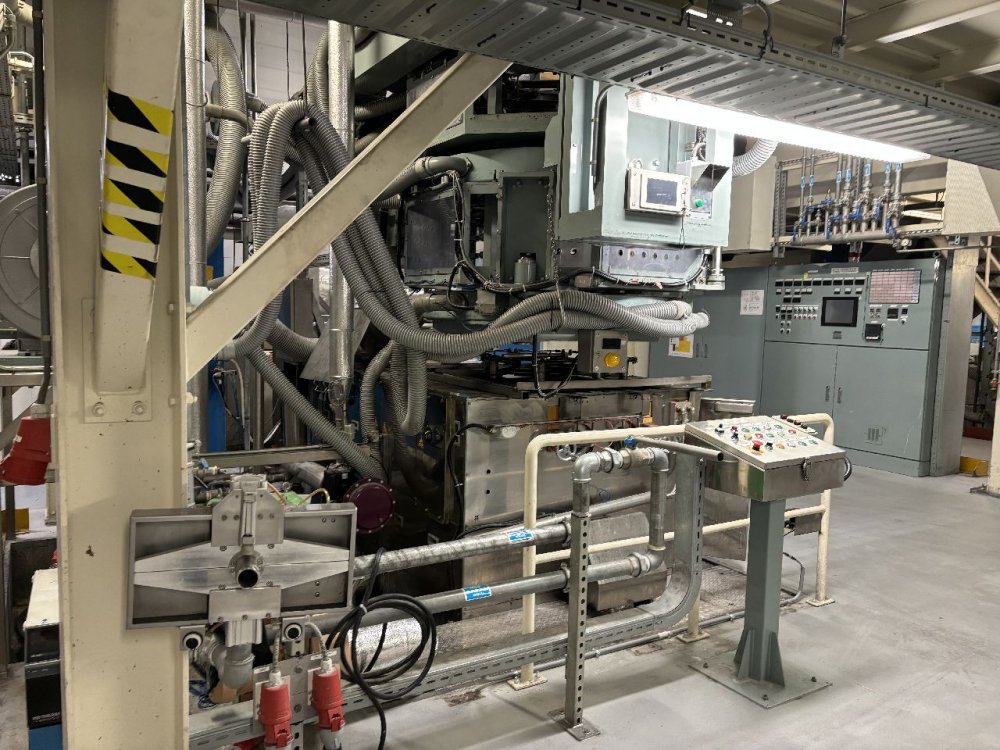 - STRETCHING: Heat Bath: Moist heat and dry heat bath. Pinch system. Typical Speed 64 m/min, rollers face length 500mm, Heating length 418-2450mm Stretching: Bubble size: Bubble diameter range: 280-765mm, layflat film width 400-1200mm Cooling length: 6500-7500mm Take off: Max speed after stretching 100m/min, Rollers face width 1350mm, double motor drive HT: Max speed input 103m/min Relaxation: -30% to +10% Heat tunnel size: diam 1000mm , length 3500mm Heating HD + air Damper/Sliding length:4500mm Roller face width 1250mm Thickness gauge