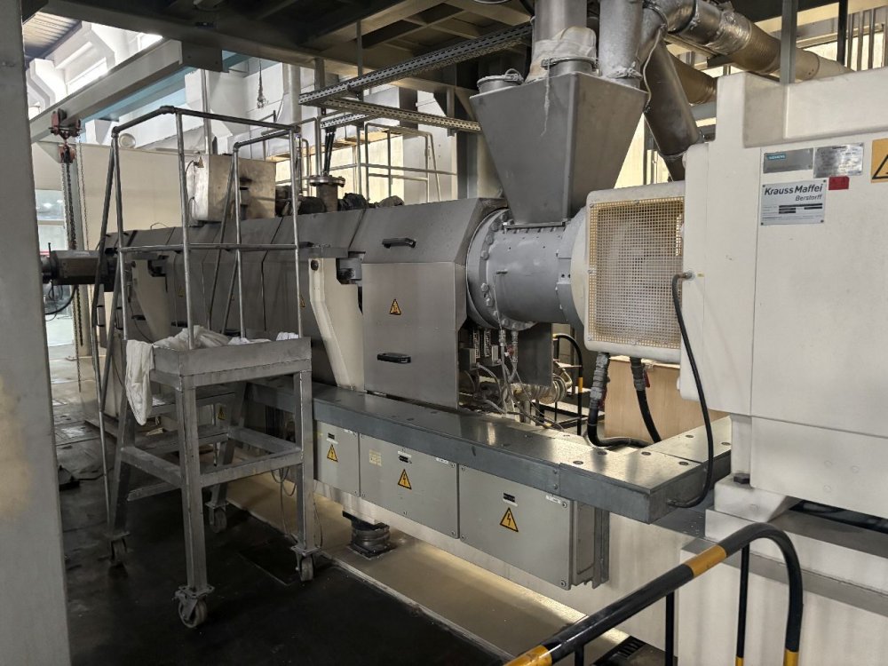 - Main extruder layer C: -year 2017 - type twin co-rotating screw, model ZE130/34D - Barrel diam 140mm L/D34 - Speed nominal 300 rpm - Output 4500 kg/h - Gravimetric blender 4 components, mixing hopper - Drive AC motor 1100 kW - 6 heating zones, 204 kW, Water cooled - Melt pump 60 kW ac motor - Filter: Long life candle type with 48 candles, 5,3 m3