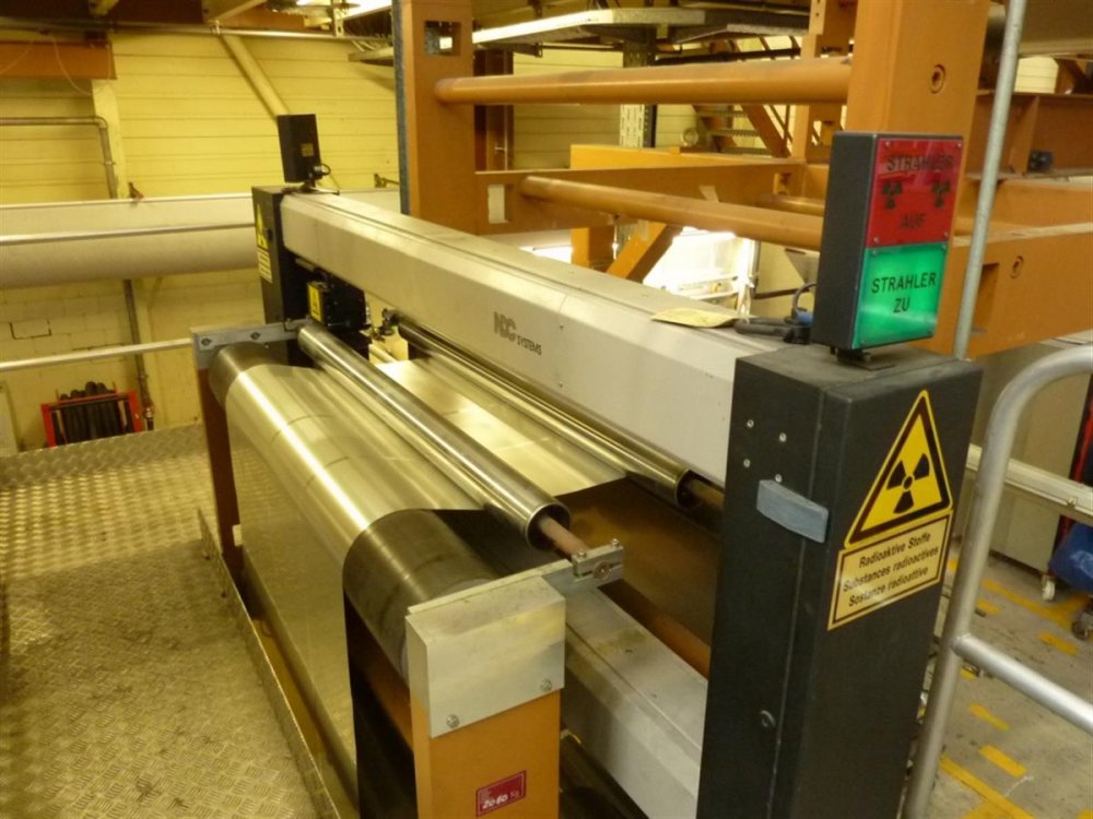 - - Min width 650mm - Thickness measurement NDC. System includes 2 measuring units, one before coating, second after. Both thickness measuerment system via beta rays. Beta rays source was currently disposed. - Unwinder and rewinder not available. As optionals we can offer Unwinder and rewinder Nordmeccanica, turret type, rell diam 1000 mm available at 35.000 Eur tot price for botht. As additional Optional IMS rewinder (UNRE30), POPE roler type, width 1700mm diam 1900mm. Price 55.000 Eur