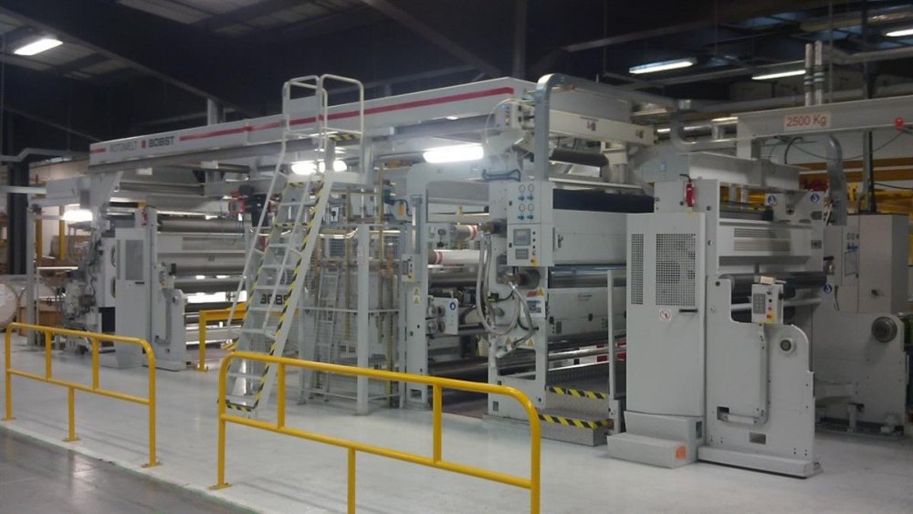 | Note | BST web guide 2x Shafted type (3”) unwinds 900-1650mm web width range NDC gauge (IR type) for reading surface thickness Hoist for reel loading and unloading. 400v, 50hz, 3 phase required |