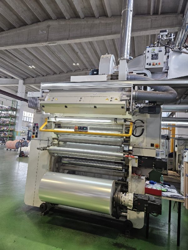| Note | equipped with both solventless trolley and with rotogravure trolley for solvent based . Register control for cold seal application |