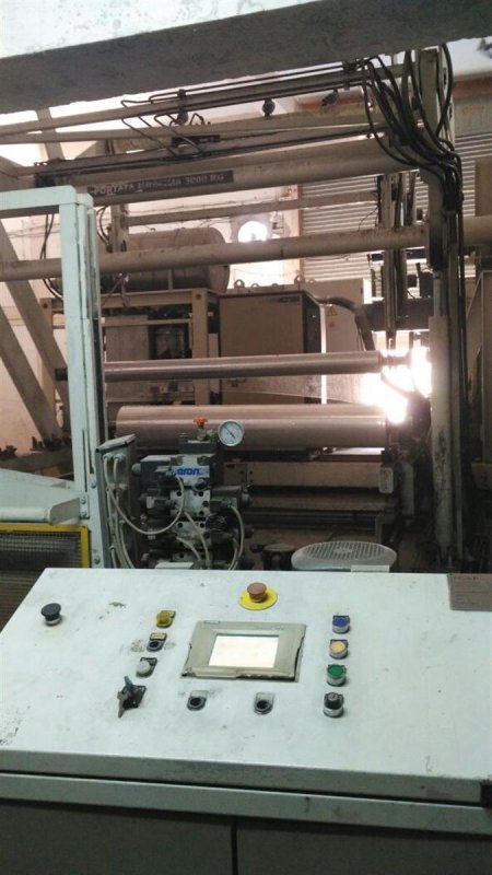| Note | Output : 20 tons per day ( calculated for 12 mic Polyester Film in maximum width ). Min. metallization width 1200mm . Core ID 152mm . Diam of ALU wire 1.6mm. Unwinding tension range /tension capstan unit : 3.5 to 65 Kg / 90 Kg . Diameter of process roller : 500 mm . Additional Cooling System Corema Chilling unit for main process drum ( -20 C) . Max. Absorbed power (approx..) 340 KW . Number of chambers: 3 independent vacuum chambers with independent pumping systems to increase the efficiency of the vacuum. Optical control RF: Controls during metallization process the thickness of aluminium coating through photometric non---contact sensors. The system also controls automatically (via step motor) the deposit of aluminium and the feeding of the wire. Rewinding Unit: Digitally control to ensure an accurate rewinding tension control, via the following five DC motors: Unwinding,Rewinding, process roller (main drive), 2 capstan rollers. Two ceramic plated rollers, 2 bowed spreader rollers, oscillating arm on the rewinder with tension sensing control system. Handling of the rolls: The machine includes a hydraulically driven robotic handling system, manufactured by ICAP Group, for the loading of the jumbo roll, and unloading of the finished rolls. This same system also inserts and extracts the air expanding shafts during the loading and unloading procedure .3 air Shafts are included in the supply . Special Robotic System for Loading & Unloading of rolls. |