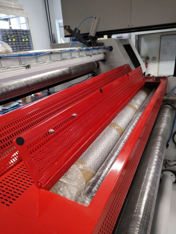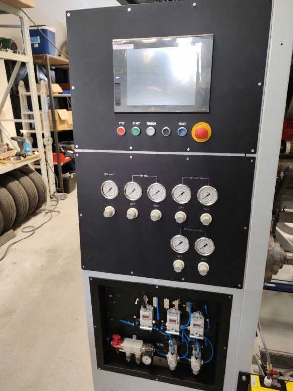 | Note | Mechanical complete overhaul : Recovered path rollers , rubber rollers Repainting machine base Installation new SMC pneumatics control Electrical overhaul : 4 x B&R drives Safety relay ( E-stops , safety guards , SICK laser scanner ) B&R touch screen HMI for job setting , storage and recall Modem connection for remote support |