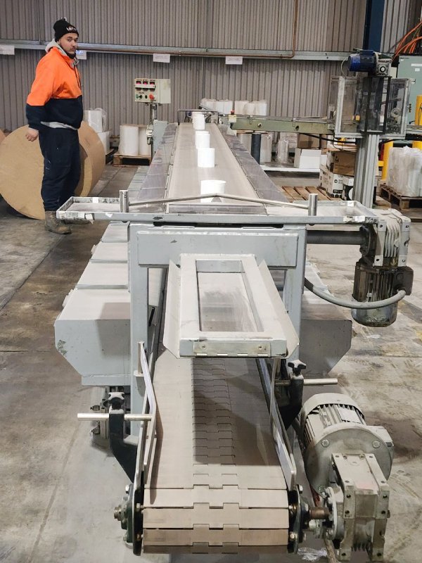 - Fully Automatic Dual Paper Slitting Machine Maximum web speed 655 mpm Maximum web width 975mm Minimum web width 630mm Maximum unwind roll diameter 1270mm Maximum roll weight 1362kgs Maximum rewind roll diameter 300mm Maximum rewind core O/D 32mm Minimum rewind core O/D 16mm Automatic core transfer to bed rollers Automatic tail cutter. Glue end of roll sealing Automatic roll transfer to eject conveyor Shaftless unwind stands Tension control Automatic male knife insertion Automatic core positioning system P & S RPL unit Purpose built roll packaging station with auto conveyor systems. Roll core pounder unit Machine currently set up for 79mm x 80mm rolls