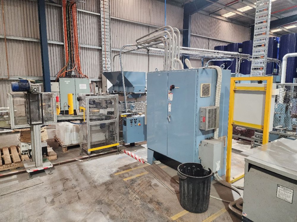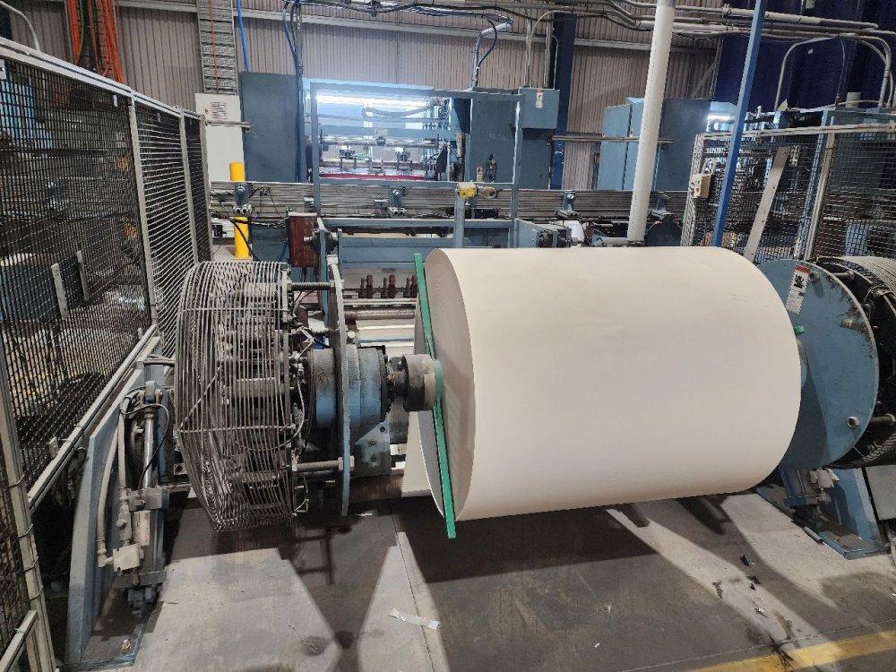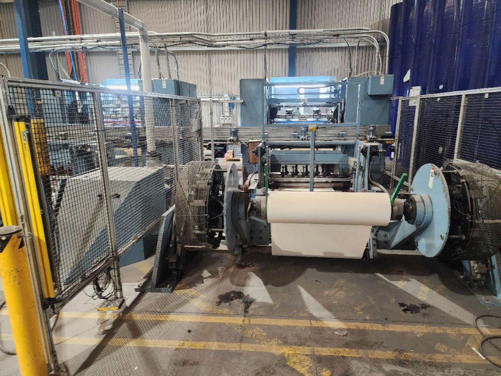 | Note | Fully Automatic Dual Paper Slitting Machine Maximum web speed 655 mpm Maximum web width 975mm Minimum web width 630mm Maximum unwind roll diameter 1270mm Maximum roll weight 1362kgs Maximum rewind roll diameter 300mm Maximum rewind core O/D 32mm Minimum rewind core O/D 16mm Automatic core transfer to bed rollers Automatic tail cutter. Glue end of roll sealing Automatic roll transfer to eject conveyor Shaftless unwind stands Tension control Automatic male knife insertion Automatic core positioning system P & S RPL unit Purpose built roll packaging station with auto conveyor systems. Roll core pounder unit Machine currently set up for 79mm x 80mm rolls |