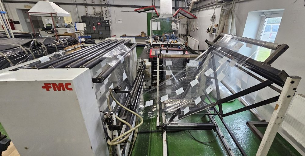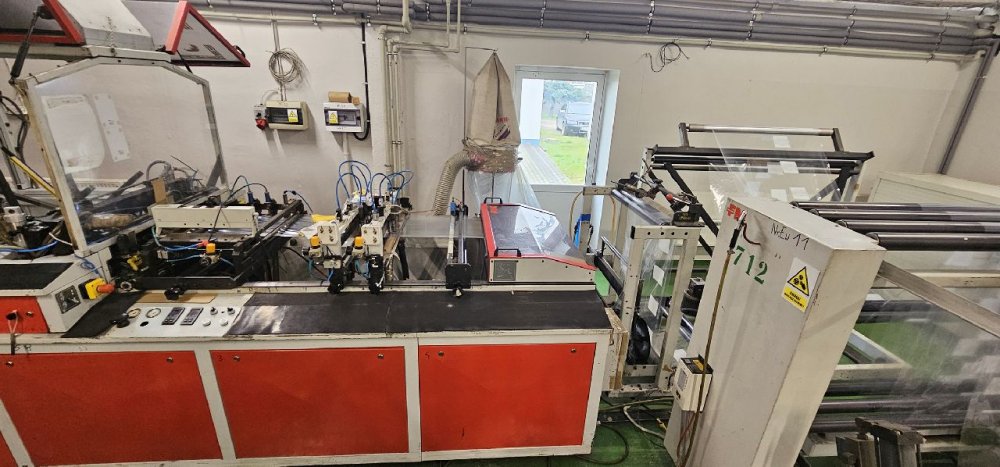 | Note | Servo drives 2x (1 x draw rolls and 1 x sealing bar) Unwind stand 1600mm + folding triangle+ film edge guiding (hydraulic drive) Gusset formers Compensator with dancing shafts Longitudinal perforation wheel Macroperforation banks Antistatic bars Wicket holes cutters Automatic stacking conveyor |