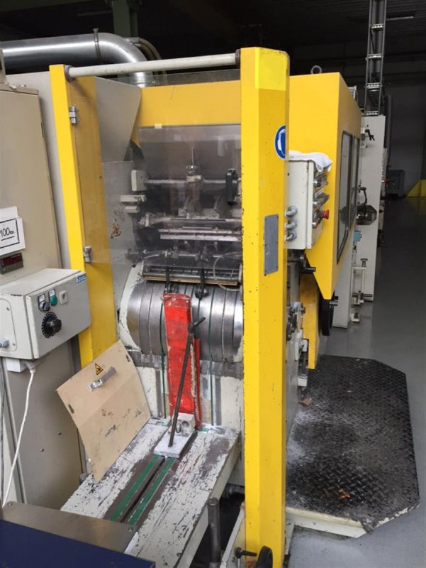 - Gusset depth: 80 mm Flap: 13.3 mm Max speed with 4 clamps : 1000 sacs/mn Max speed with 2 clamps: 500 sacs/mn Overall drive system: Standard Slitting: Adjustable perforator Infeed cylinder: Manual pressure Tube forming: Standard plate forming Longitudinal gluing: Hot and cold by nozzle Bottom gluing: Standard Ejection: Motorized table / Unwinder for PP window 4 color print unit W&H QMS 992 Waxing unit Window unit